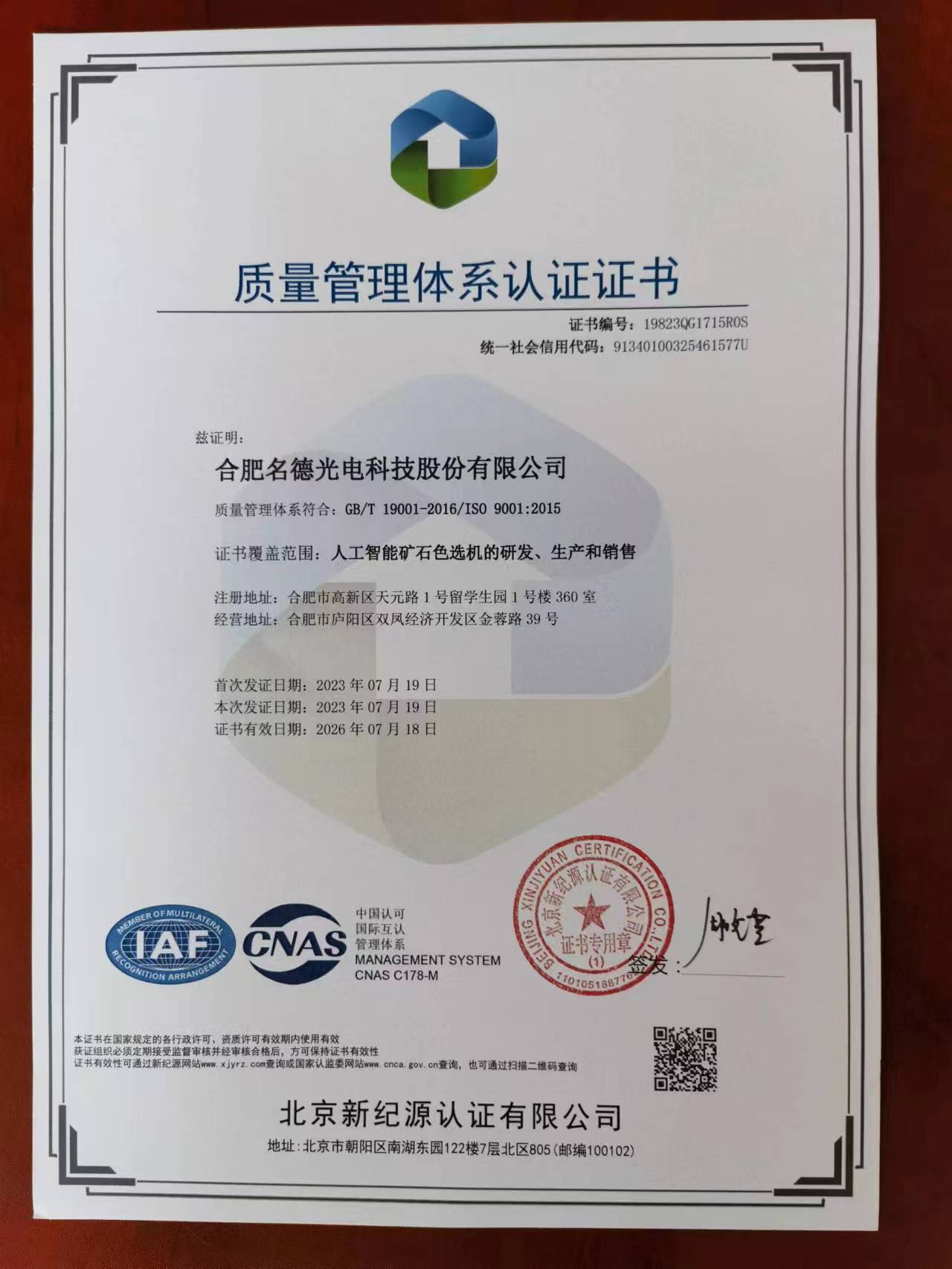 合肥名德光電科技股份有限公司,成立于2014年,總部位于合肥,是一家專業(yè)從事礦業(yè)智能分選、智能分揀機器人和礦業(yè)裝備研發(fā)、設計、制造、銷售、服務的高新技術企業(yè),公司自建有40余畝的生產研發(fā)基地,擁有20000平標準化廠房和科研中心。